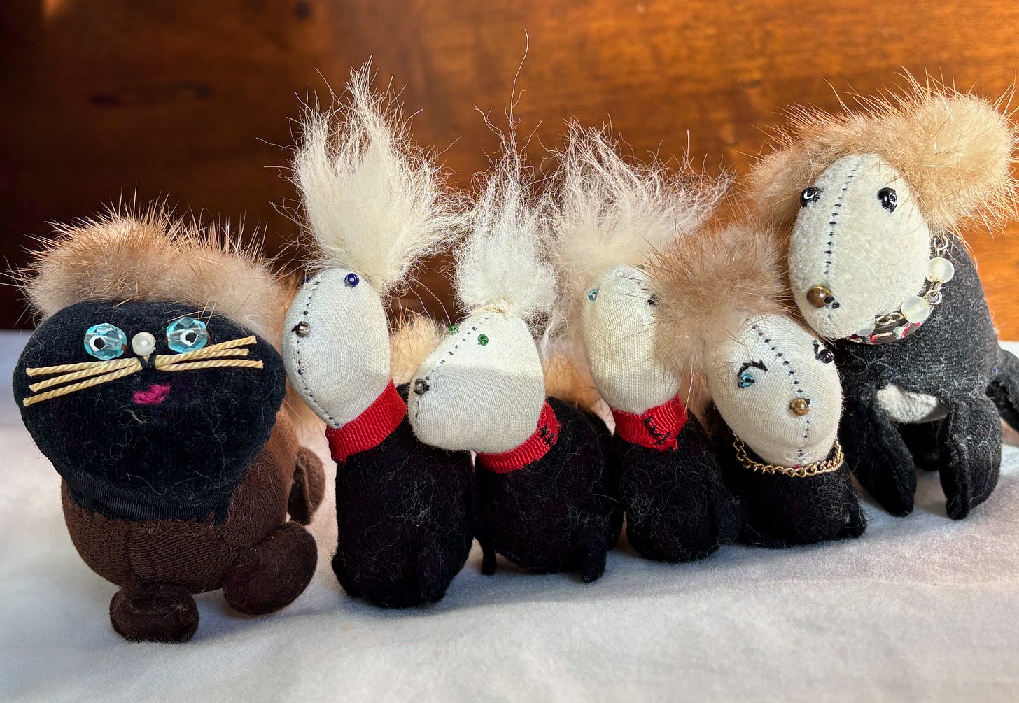 Sadly, Mom and Dad eventually divorced. And although she was deeply heartbroken, she had succeeded in making not one but two blended families. One of these families is a series of handmade dolls with vastly different backgrounds and of various species, and now living happily ever after.