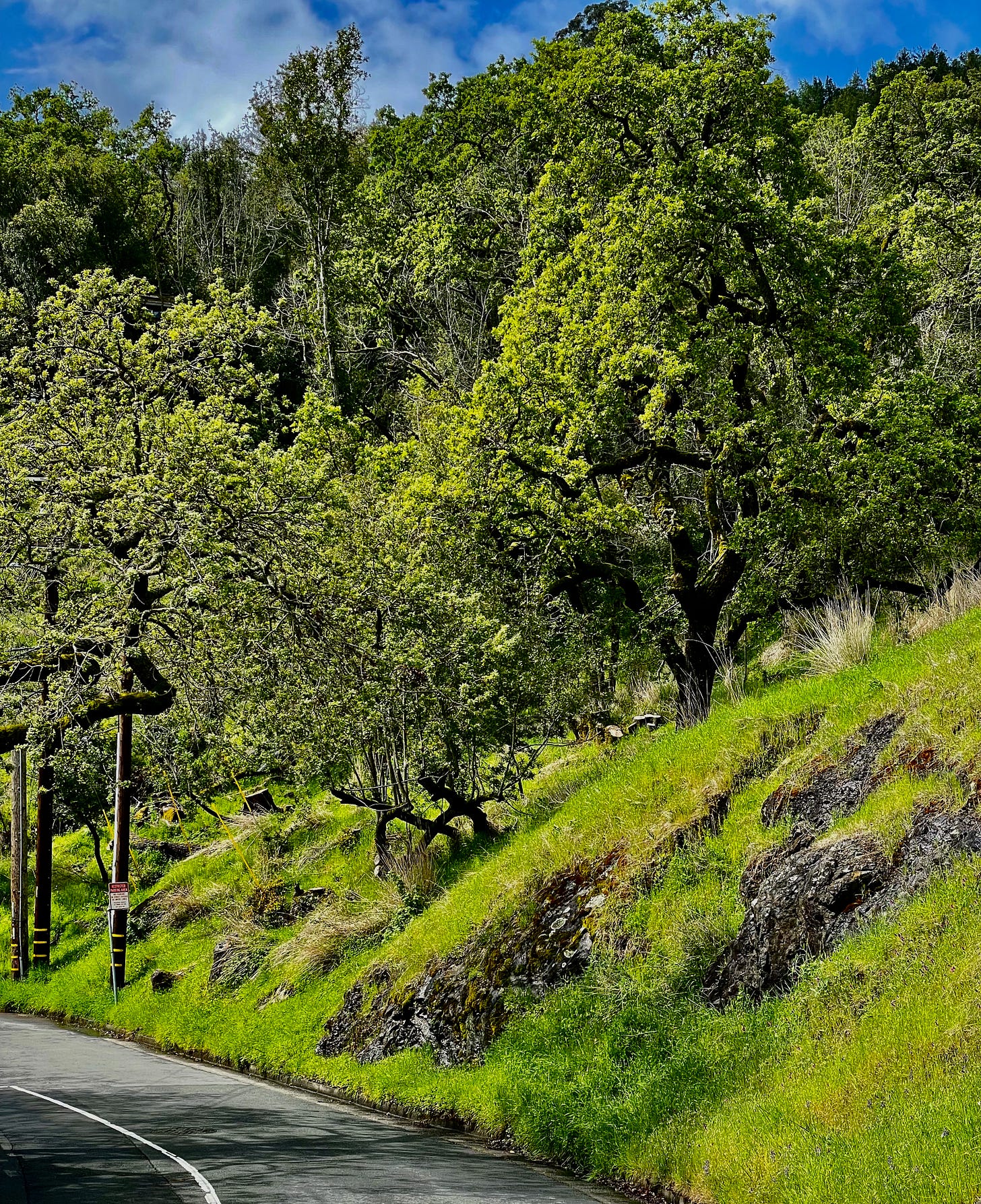 A friend calls this new place my little tree house. It’s a cottage of sorts, tucked into a steep hill among eucalyptus and oak groves above Highway 101. A cup of coffee on the windowsill, I watch the sunrise. The first light peeks through a hole in a long cloud shaped like a side-sleeping human. The hole closes. The light finds a way, though, easily silvering the cloud edge.